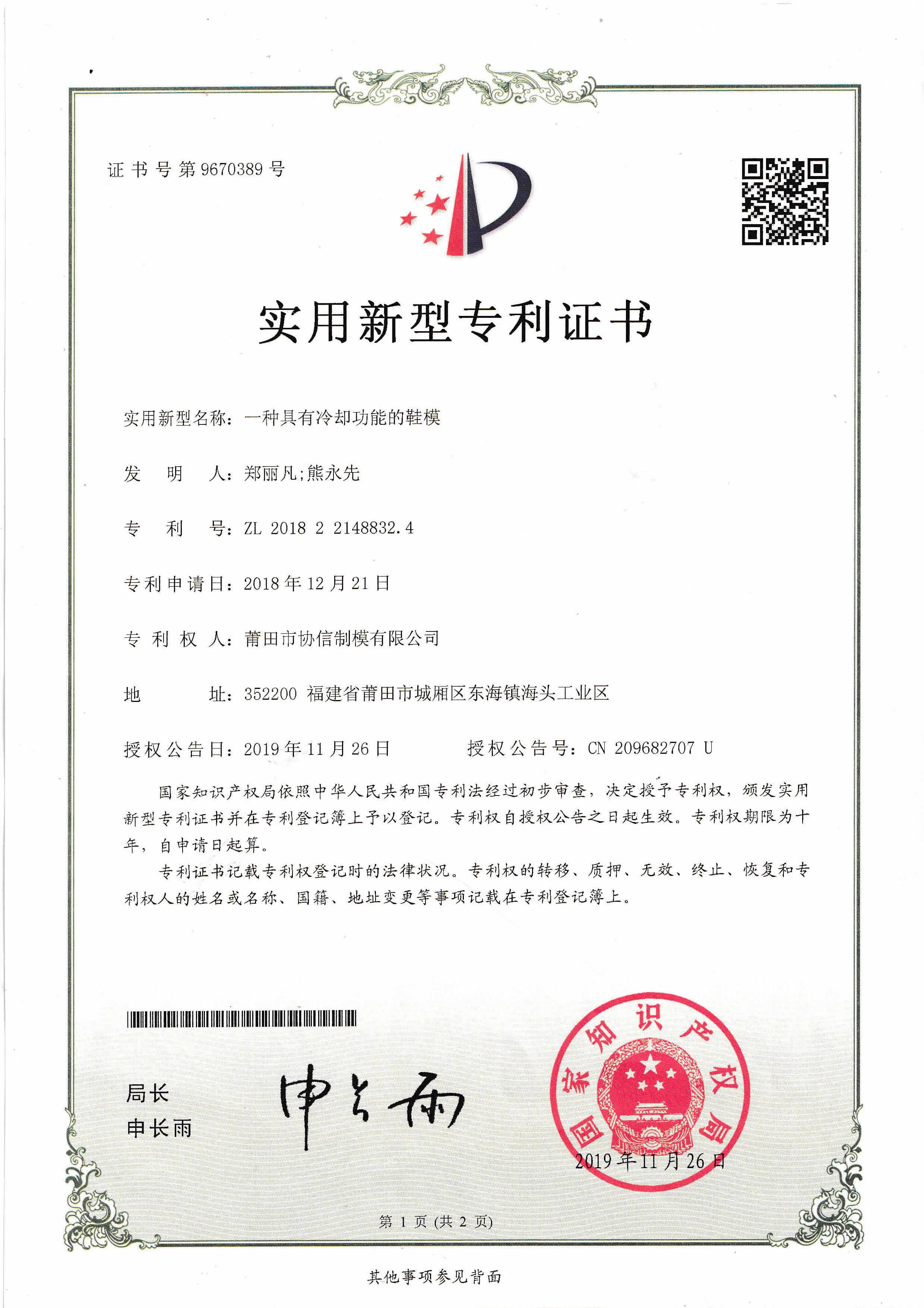 莆田市協(xié)信制模有限公司成立于2003年9月10日,由香港協(xié)信香港協(xié)信國際貿(mào)易有限公司投資組建,注冊資金120萬美元,是一家專業(yè)從事業(yè)鞋類模具設(shè)計(jì)、制造與銷售企業(yè),在行業(yè)內(nèi)享有盛譽(yù)。主要產(chǎn)品:RB、EVA、PVC、TPU、TR、TPR、ETPU、射出EVA等。公司月產(chǎn)能模具900多套,所有產(chǎn)品均采用國際質(zhì)量標(biāo)準(zhǔn),各個(gè)生產(chǎn)環(huán)節(jié)貫徹完善品質(zhì)檢查體系。